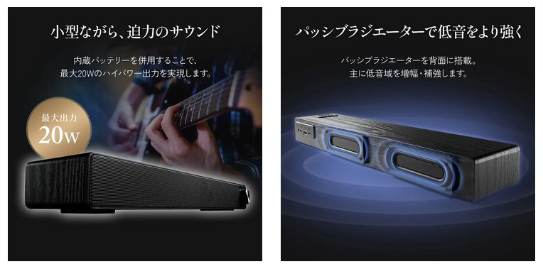 ■20Wのハイパワー音質と多彩な再生方法を備えたサウンドバー「400-SP120」