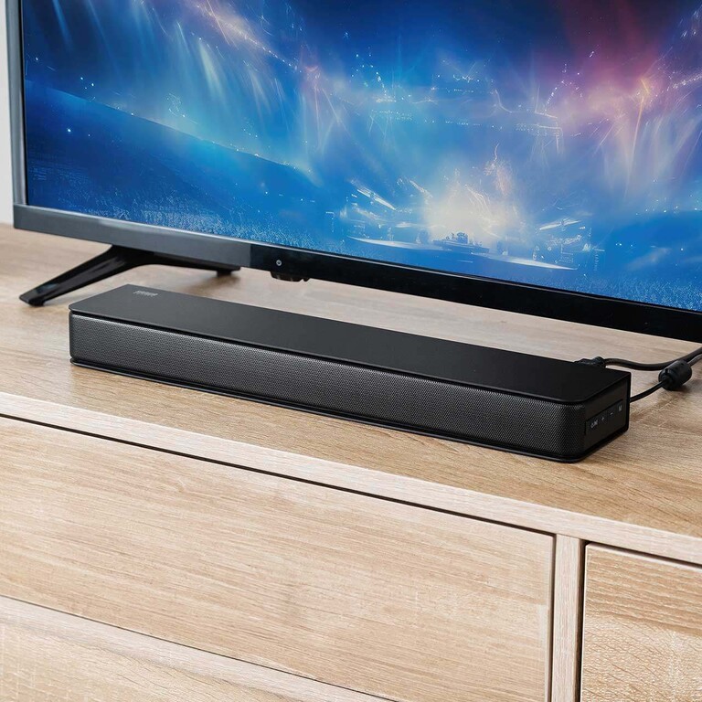 本製品は、高さ約40ミリの超薄型設計で、テレビの前など狭いスペースにもスマートに設置できる。