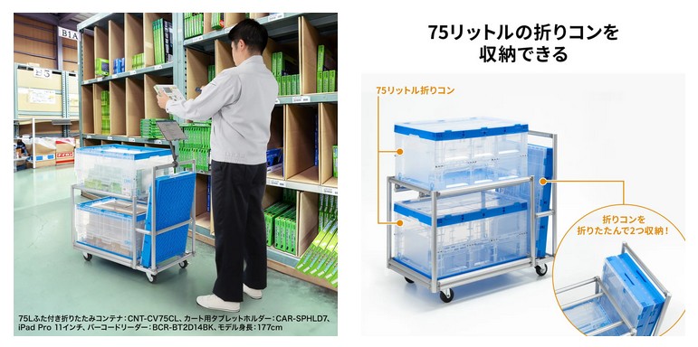 サンワサプライ株式会社は、物流倉庫などのピッキング作業で使用する際、軽量なので、女性でも扱いやすいアルミ製パイプカート「CART-FA15PRA」を発売した。日本社製の安定したキャスターを使用し、75リットル仕様の折りたたみコンテナの出し入れがしやすいオープン構造を採用している。屋内外での使用が可能で、コンパクトで効率的な作業をサポートする。