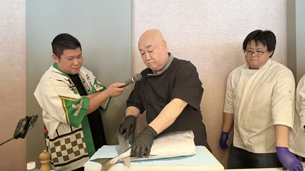 会場では、「かぼすブリ」の解体ショーも実施され、大いに盛り上がった。