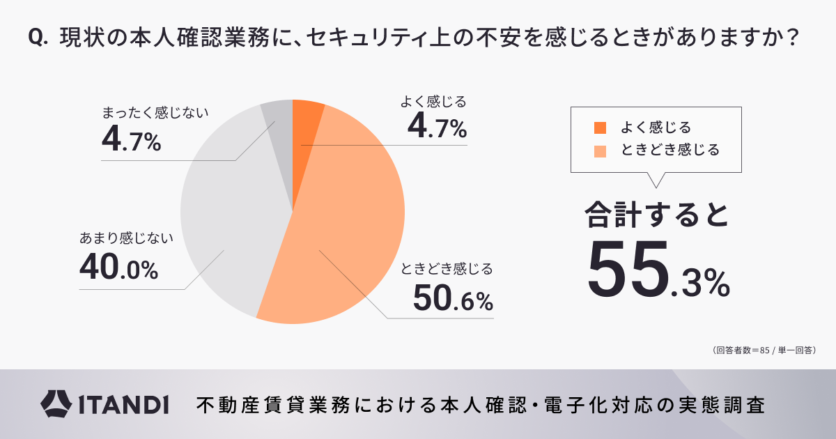 〇半数以上となる55.3%が本人確認業務でセキュリティ上の不安を感じている
