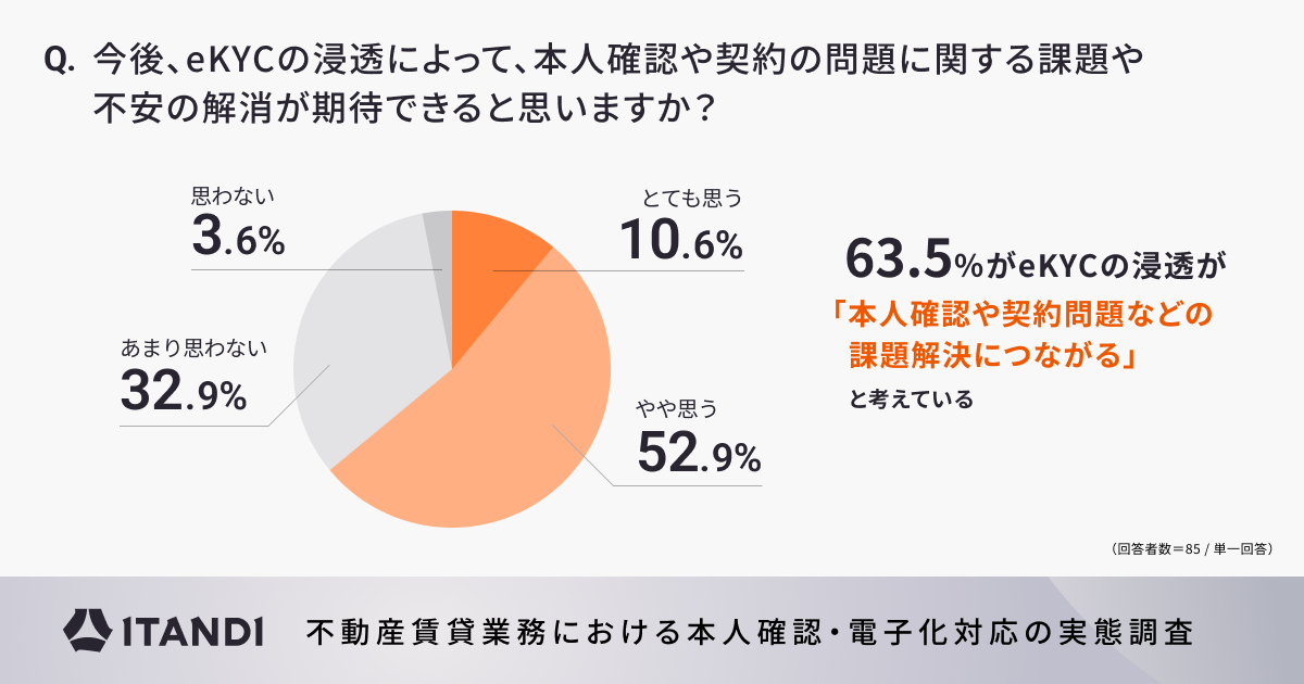 〇63.5%がeKYCの浸透が「本人確認や契約問題などの課題解決につながる」と考えていることが明らかに