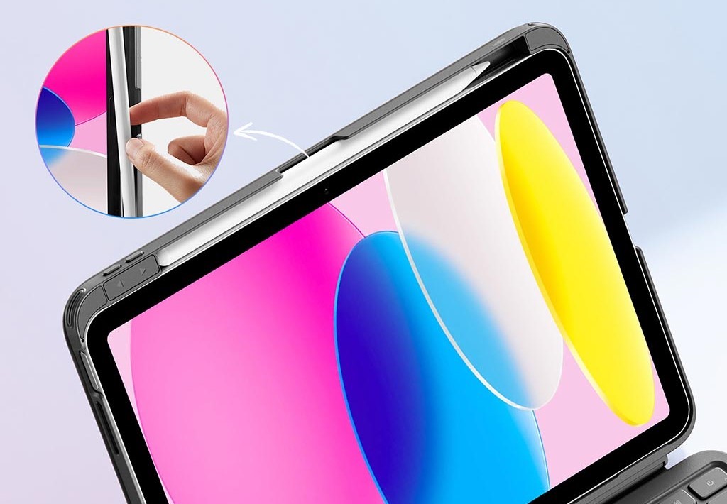 側面には、Apple PencilをiPadマグネットで固定できるよう凹みが設けられており、充電しながらすっきり収納できる。