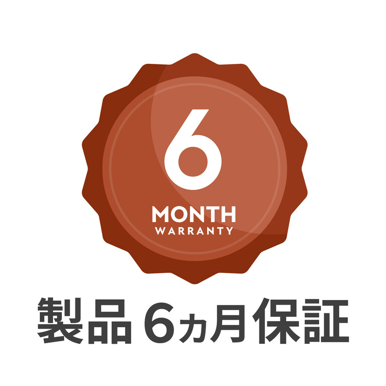 本製品は6ヵ月保証がございます。ご使用中に万が一不具合などが発生した場合、保証期間内であれば無償で交換を保証する。お客様が安心して長くお使いいただける製品品質と併せて、サポート体制にも力を入れている。