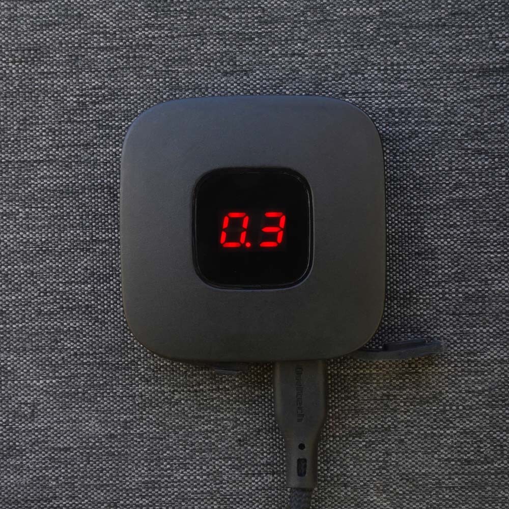 コントロールボックスから充電する機器に流れる電流が表示され、太陽光が当たって電流が流れているかを確認することができる。