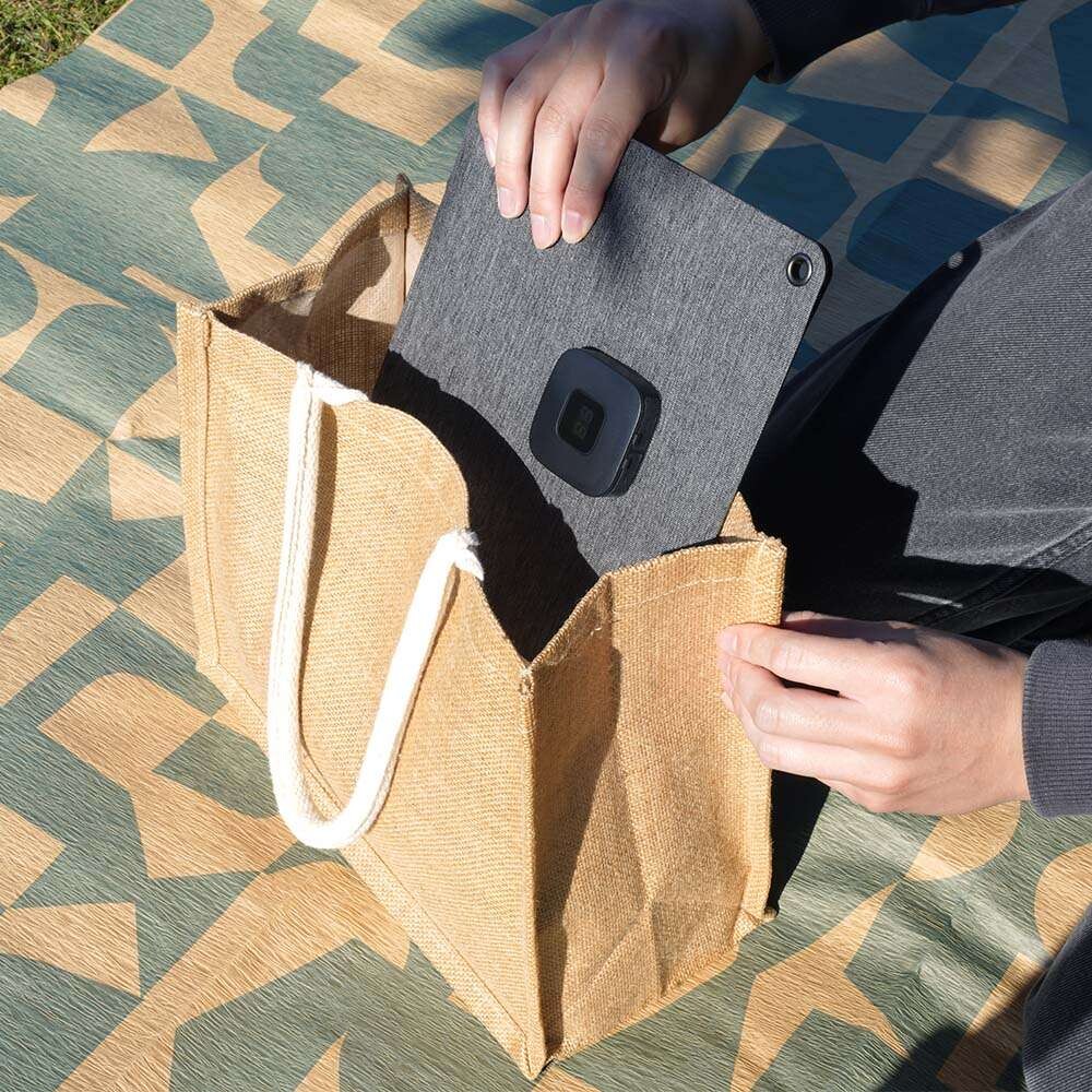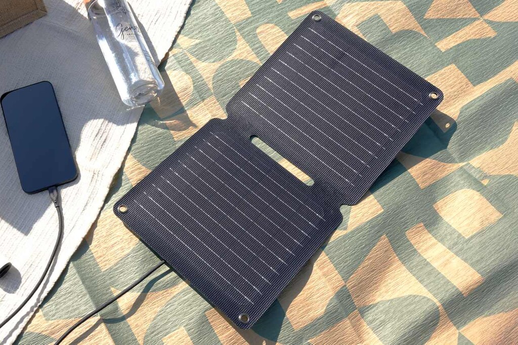 折りたたむとA4サイズより小さく、重さは410gでどこへでも気軽に持ち運べる。外出先でサッと取り出して充電できるスマートさだ。