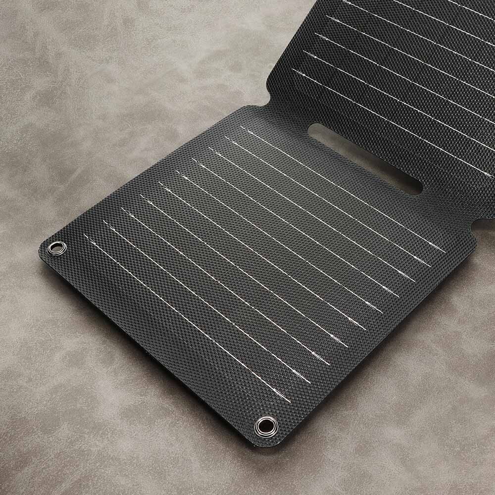 電力ロスの少ない単結晶シリコンパネルを2面搭載。最大変換効率は22.4%、発電性能は最大10W。小型ながらしっかり発電し、安定した充電をサポートする。