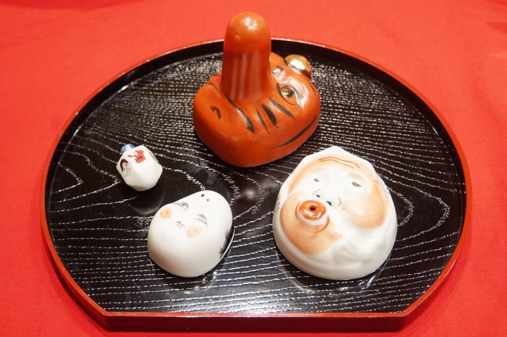 飲み切るまで置けない仕掛けがあるお座敷遊びで定番の盃。酌み交わしを通じて、初対面でも自然と交流が生まれ、一気に宴会を盛り上げる“おきゃくの名物”だ。