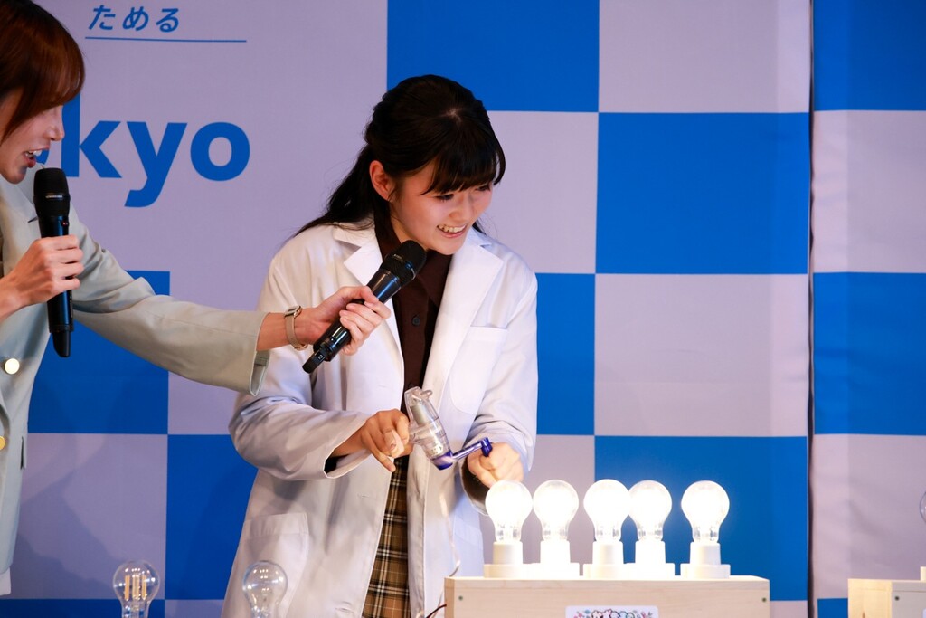 すべての実験を終え、感想を聞かれた堀越さんは、「発電することで本当にたくさんの二酸化炭素が出るんだなと知れましたし、LED電球のすごさも学べました。電気を無駄に使っていないか、家に帰ったら改めて考えたいです」と、クイズや実験を通して得た学びを振り返った。
