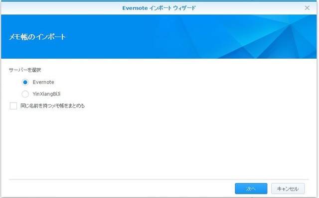 筆者の場合、有料プランのため、インポートウィザードの画面でサーバーは「Evernote」を選択、次の画面でEvernoteのアカウントとパスワードを入力するだけでOKだった。あとはNote StationがEvernoteにアクセスし、メモ帳データを表示してくれるので、インポートしたいノートにチェックを入れ「適用」をクリックするだけで、勝手にメモ帳をインポートしてくれる。