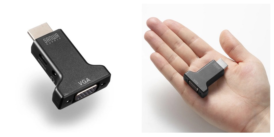 サンワサプライ株式会社は、HDMI出力を持つ機器の映像信号をVGAコネクタに変換するアダプタ「AD-HD33VGA」を発売した。HDMIコネクタからのデジタル映像+オーディオ出力をVGAコネクタ(ミニD-sub(HD)15pin)とアナログオーディオに変換でき、VGAコネクタはインチナット固定でケーブル抜けを防止する機能を搭載している。