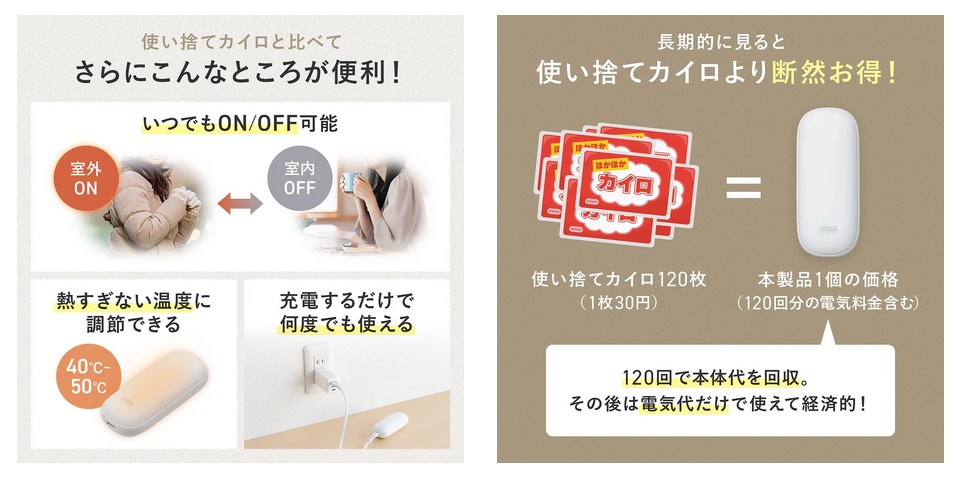 ■繰り返し使えるUSB-C充電式カイロ「400-TOY052W」