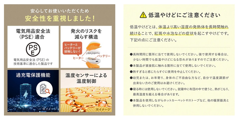 ■安全を最優先した構造と安心のPSE準拠バッテリー