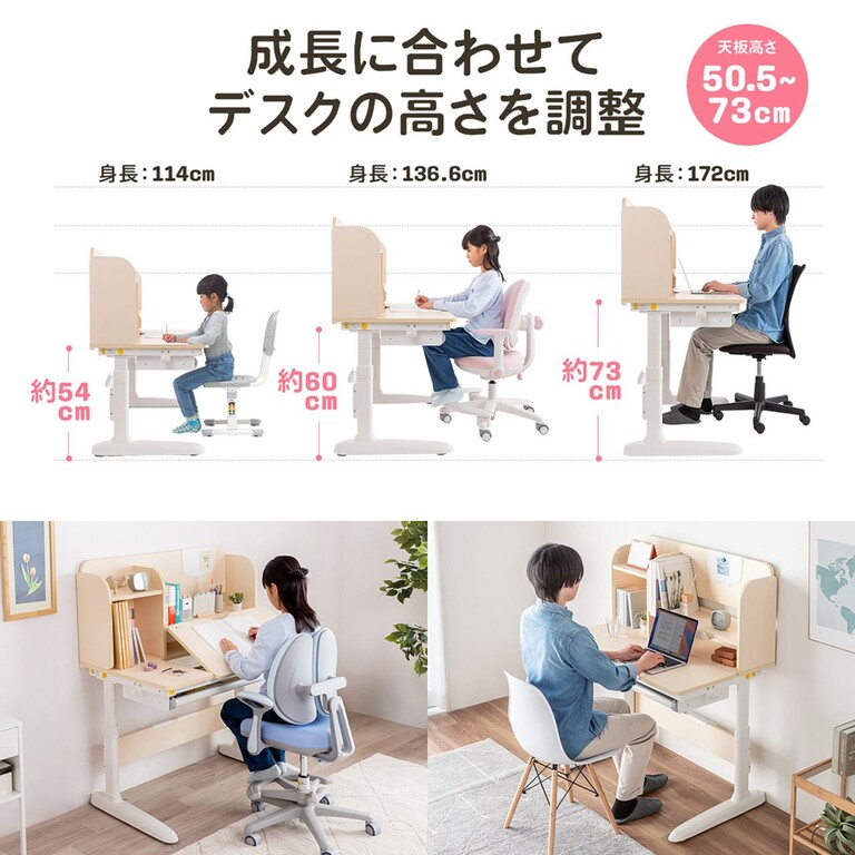 ■子どもの成長に合わせて高さを調整できる多機能学習デスク「100-ERD052LM(ハンギングボード付き)」
