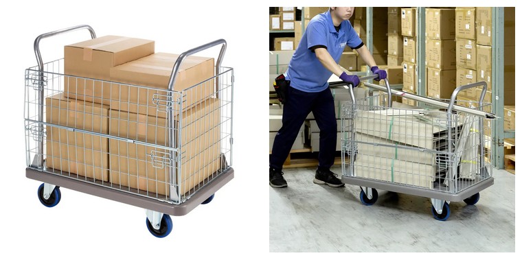 ■荷物・資材の運搬に便利なかご付き台車