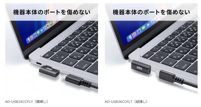 ■薄型のノートパソコンでも机に干渉しない「AD-USB35CCFLY」