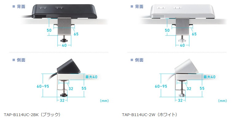 ■最大65WのUSB PD出力に対応したクランプ固定式タップ「TAP-B114UC-2BK(ブラック)」