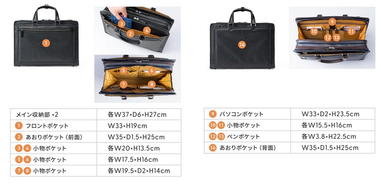 ■合計14ポケットで荷物を綺麗に収納