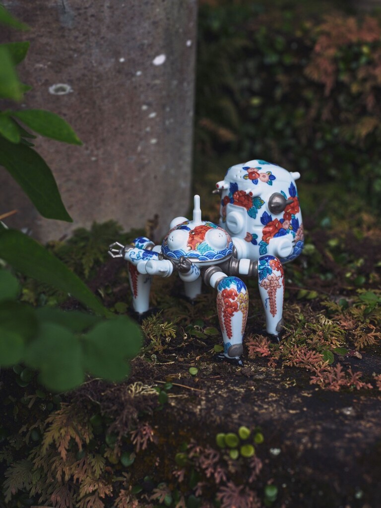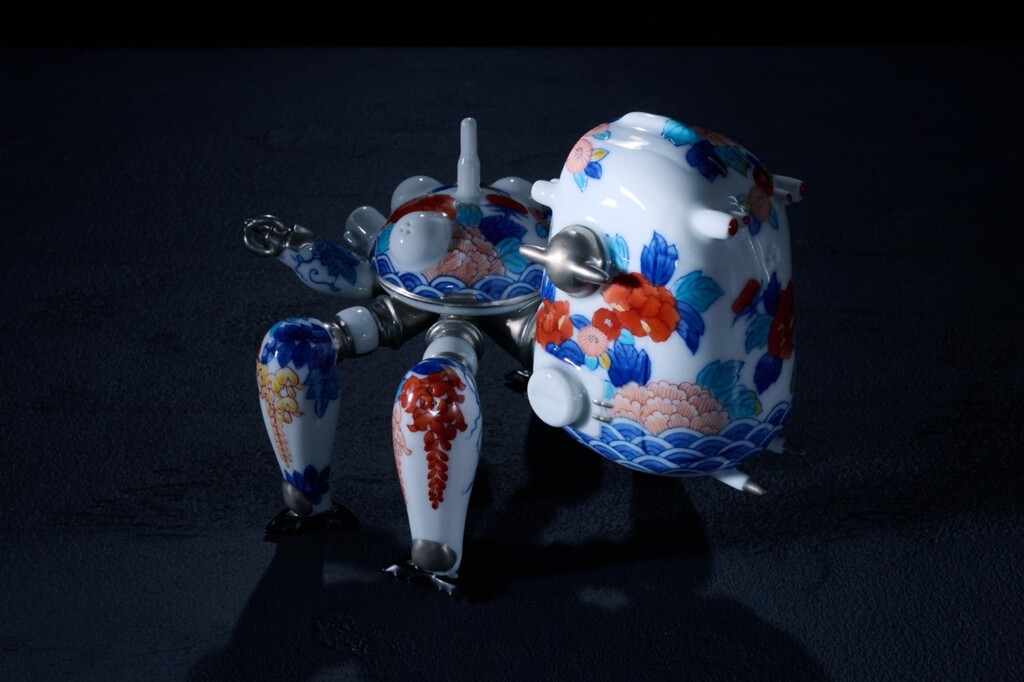 2025年、鍋島焼は開窯350年を迎えました。351年目の新たな幕開けとなる「タチコマ鍋島焼」は、“伝統×デジタル”が交差する革新的な挑戦でした。将軍家献上品として磨かれた鍋島焼の神髄は“極めて精緻な手仕事”にあります。 一本一本の生きた線、息づかいを感じる筆運び、澄んだ呉須のグラデーション。これら全てに職人の技術と経験を注ぎ込みました。タチコマの放つ生命感を、伝統技術でいかに表現するか。224Porcelainの卓越した造形に対し、畑萬陶苑は持てる最高の技で応えました。造形の力強さと絵付の精密さが生む「品格と臨場感」。そこに鍋島様式特有の「層(レイヤー)の奥行き」を調和させています。