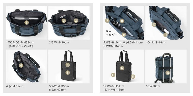 手持ち・リュック・ショルダーの3WAY仕様により、移動スタイルや服装に合わせた使い分けが可能だ。持ち手やベルト類は未使用時に収納できるため、どのスタイルでも見た目はすっきり。自転車通勤、出張、休日のお出かけまで、ライフスタイルの変化に柔軟に対応する。