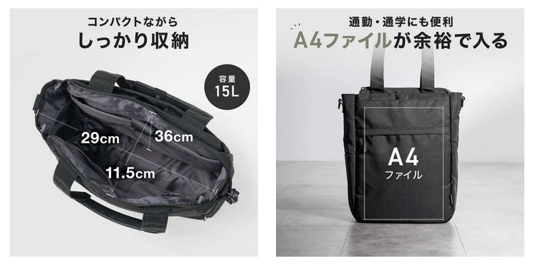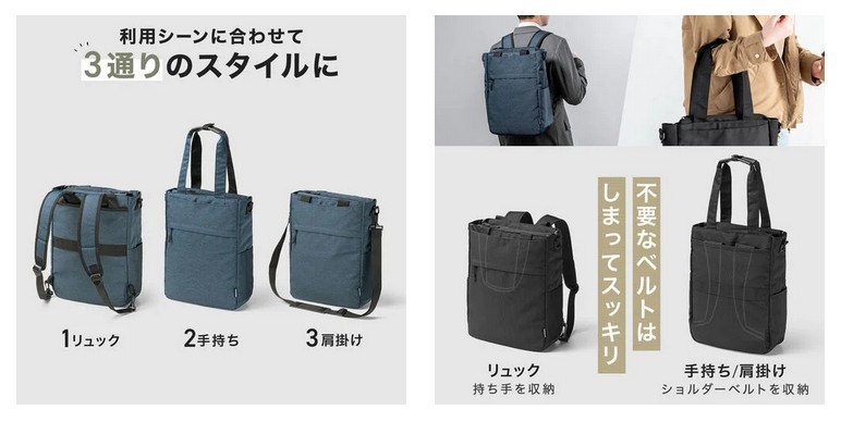 3通りの持ち方ができる多機能ビジネス対応バッグ「200-BAG179BK」