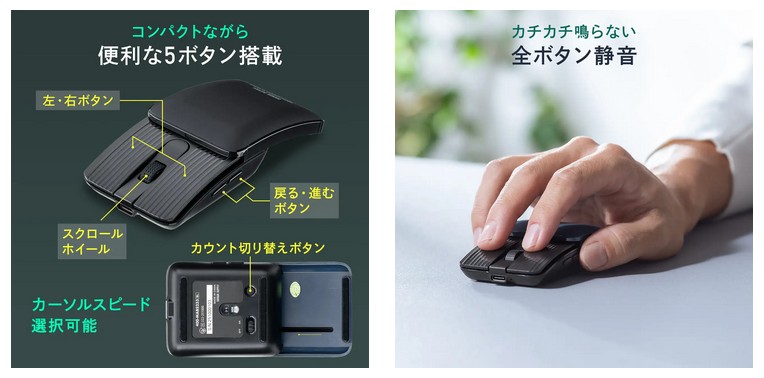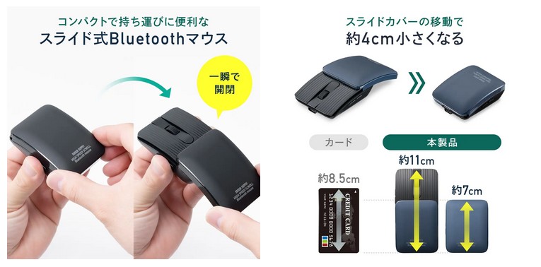 高速スクロール対応!スライドカバーを閉じて小さくなる静音Bluetoothマウス