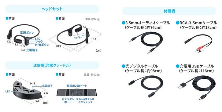 送信機は、ヘッドセットの充電クレードルとオーディオトランスミッターを兼ねた一体型。使い終わったら置くだけで充電でき、ケーブルの抜き差しも不要だ。テレビとの接続も簡単で、日々の「ちょっとした手間」を減らすスマートな設計が光る。
