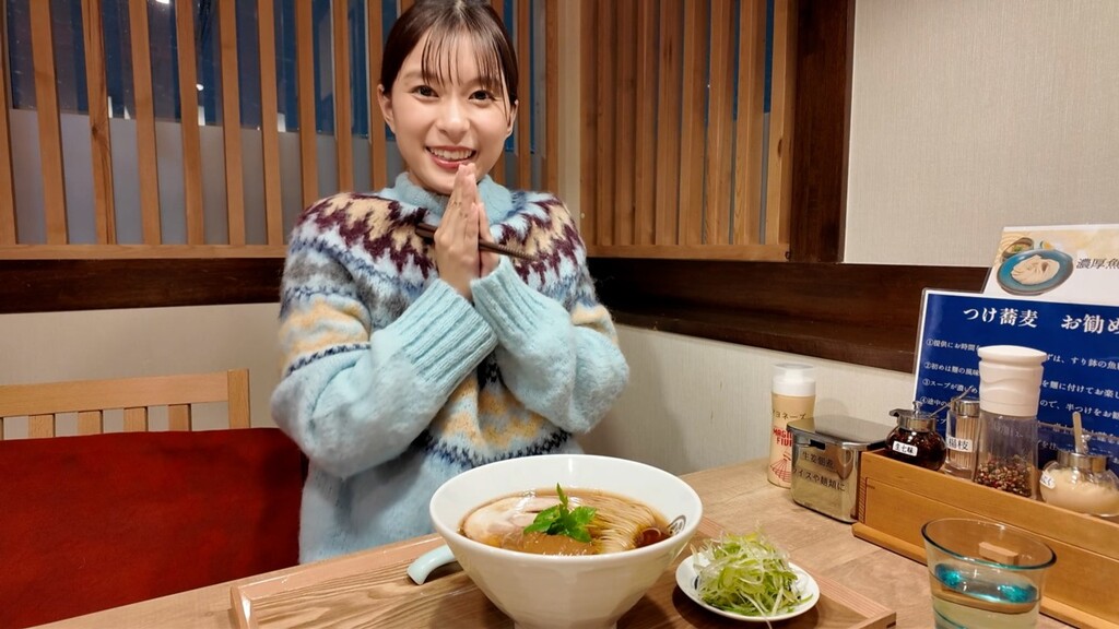 後編では、地元で愛される「つけ蕎麦 津桜」で大盛りラーメンを豪快にすする姿が描かれる。カメラを忘れ、一心不乱に麺をすする“ガチすぎる食べっぷり”は圧巻。リンゴや地元グルメを味わうシーンも含め、冬の弘前の「食」の魅力がリアルに伝わってくる。