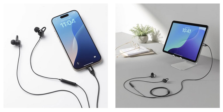 ■Type-Cポートに直接接続できるマイク付きイヤホン