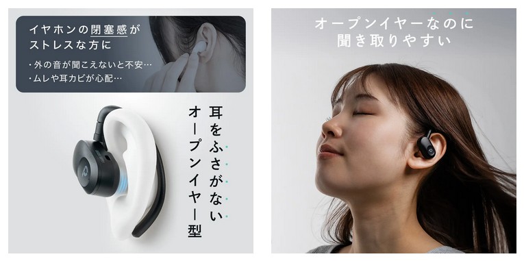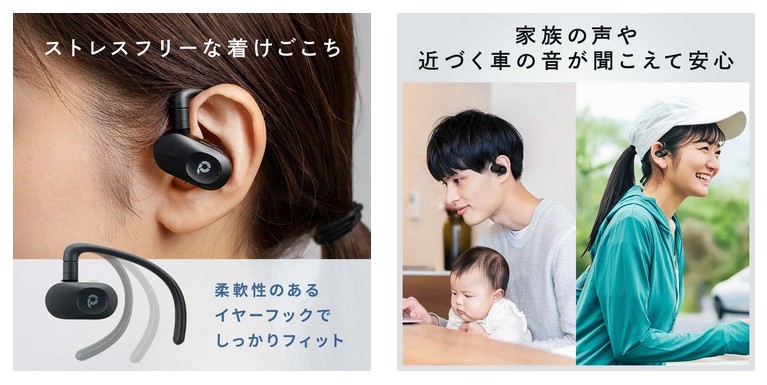 耳の穴を塞がないオープンイヤー型だから、音楽を楽しみながら周囲の音も自然にキャッチ。ランニング中の車の接近音や、家事中のインターホンにも気づける安心設計だ。蒸れにくく、長時間使用でも快適。日常生活とエンタメをシームレスにつなぐ、新しいリスニングスタイルを提案する。