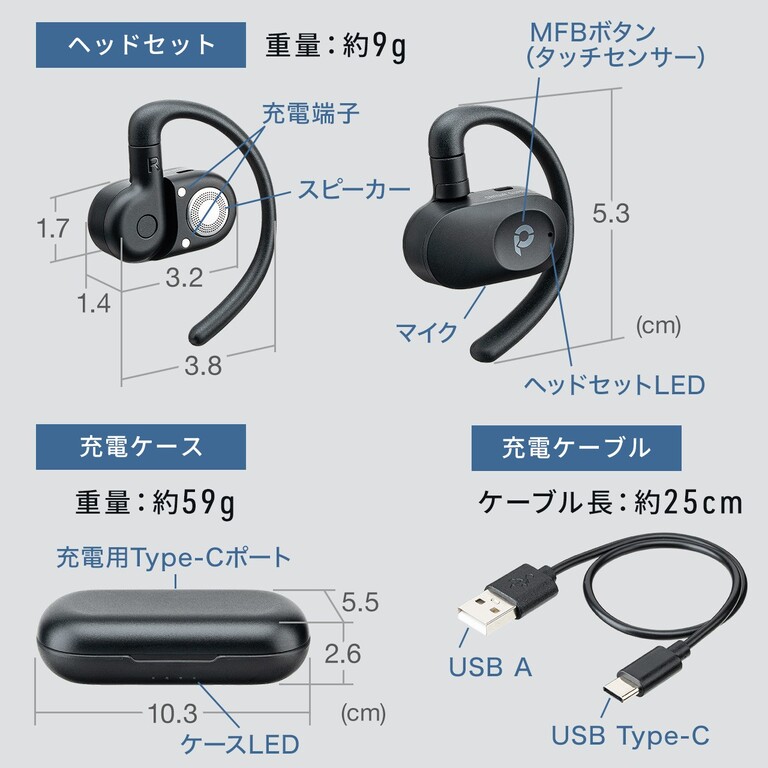 ■上下左右可動イヤーフックとBluetooth6.1対応で快適フィットと高音質を両立したオープンイヤー型ワイヤレスイヤホン「400-BTTWS7」