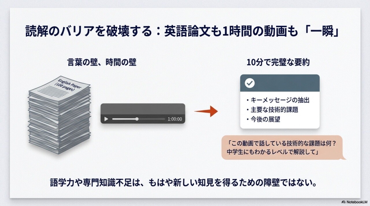 ■ 読解のバリアを破壊する:英語・論文・動画も「まかせて」