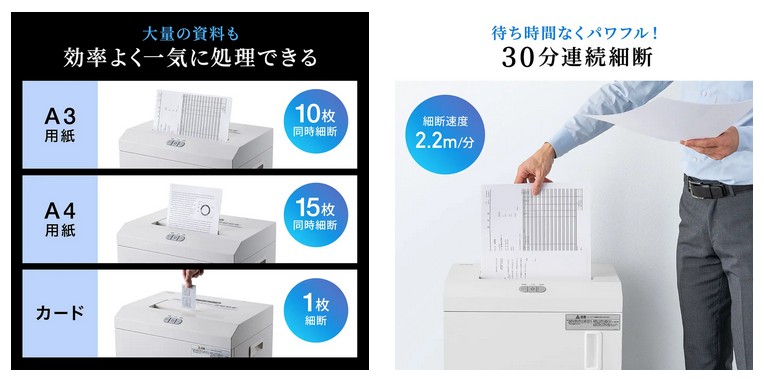 A3対応×マイクロカットで情報漏洩を防柄ぐ業務用シュレッダー「400-PSD077」