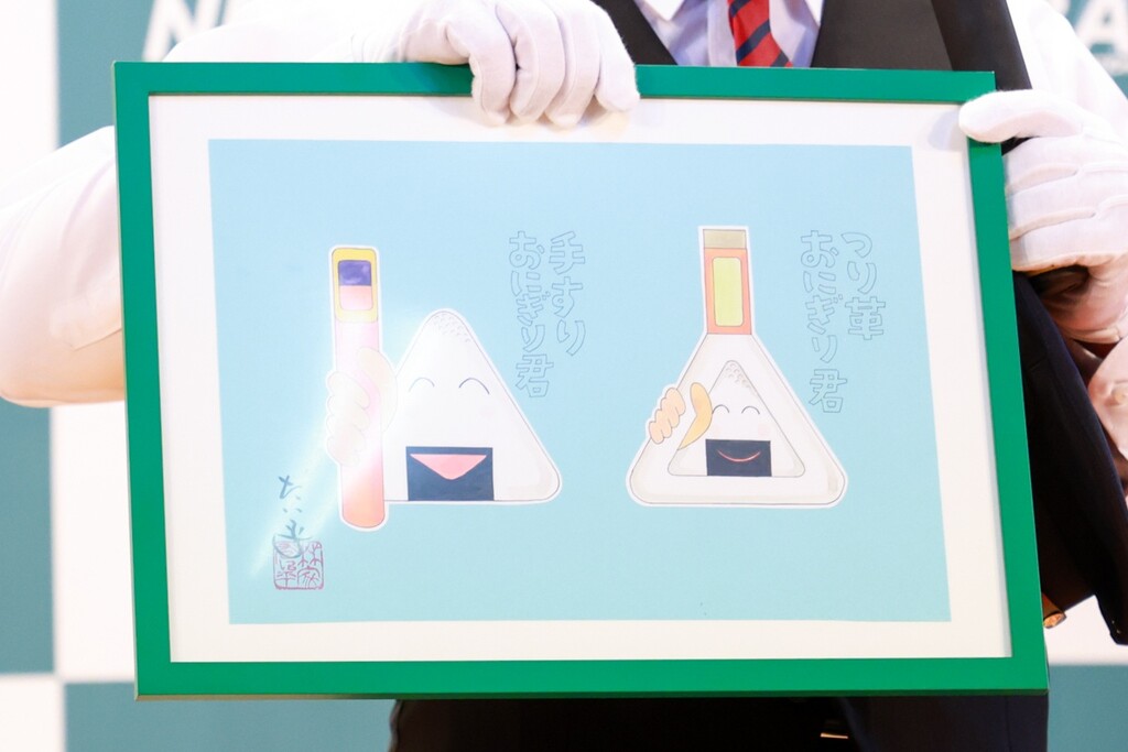 そのキャラクターとは「つり革おにぎり君」と「手すりおにぎり君」の二つ。可愛らしいおにぎりのキャラクターだが、つり革と手すりにしっかりつかまる姿が描かれている。