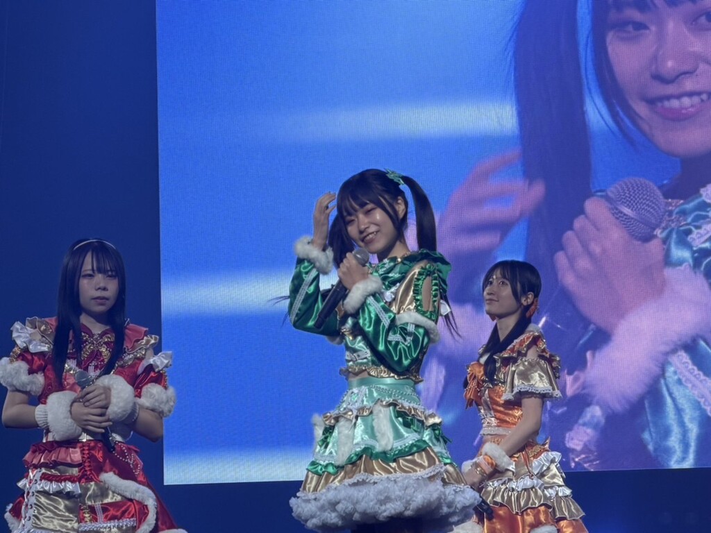 ・天性の明るさで観客の心を掴む 仁瀬みる。「『ペガサス』の歌詞に込められた思いが、今の、そして未来の私たちを暗示していると感じています」と語り、楽曲に託したグループの決意を滲ませた。