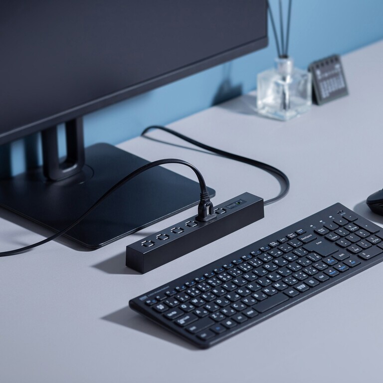 スリムなデザインで省スペース設置が可能。デスク周りやリビングでもすっきりと使える。