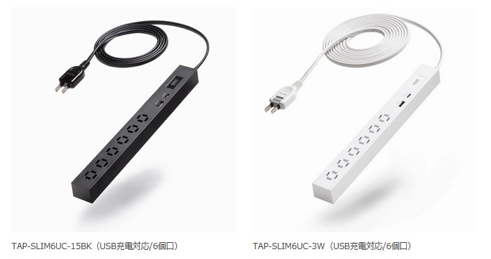 また、USB充電対応タイプの「TAP-SLIM6UC-15BK/W」、「TAP-SLIM6UC-3BK/W」も発売中。