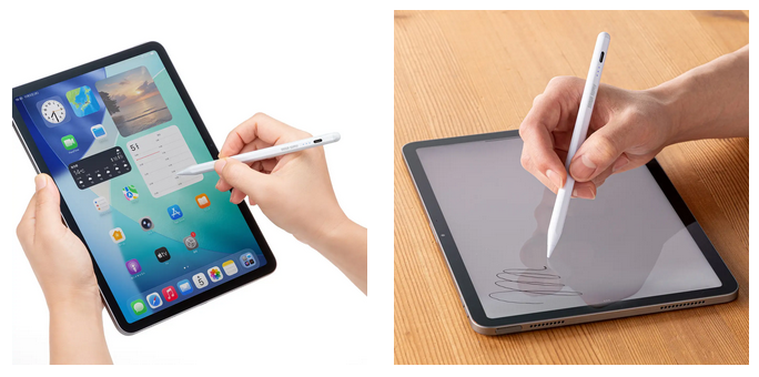 Apple iPad専用の充電式タッチペンで、2018年以降のモデルに対応する。ペン先が直径約1.5mmの極細なので、視界を遮らず、細い字や繊細な絵も綺麗に書くことができる。