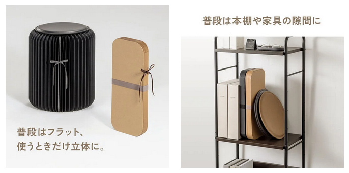 普段はフラット、使うときだけパッと広がる!折りたたみ式ペーパースツール