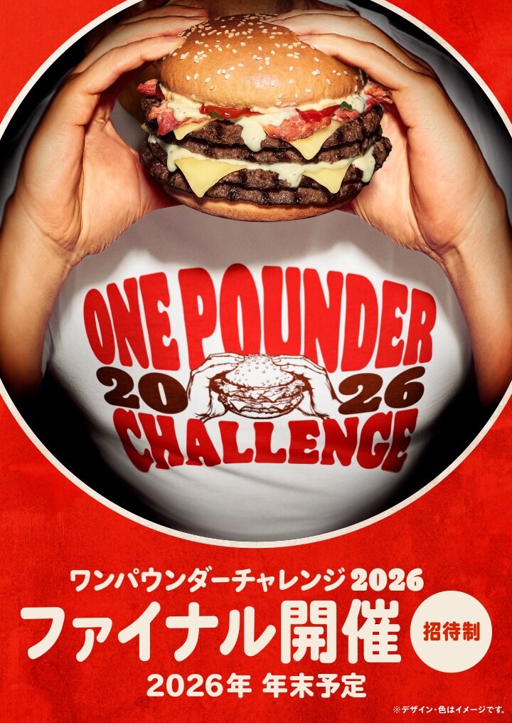 さらに、各回でバーガーを完食した数が多かった3名様(計9名様)を2026年 年末に都内某所にて開催予定の「ワンパウンダーチャレンジ2026 ファイナル」へ招待する。