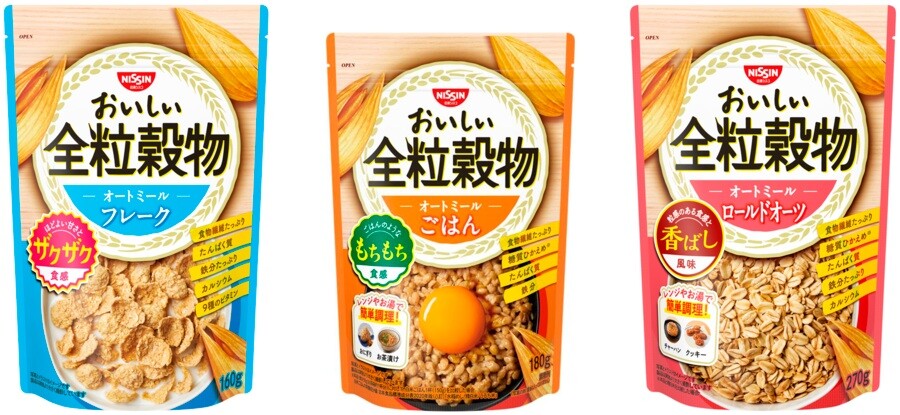 ■「おいしい全粒穀物シリーズ」3種。毎日の食事に取り入れて食物繊維を手軽に摂取