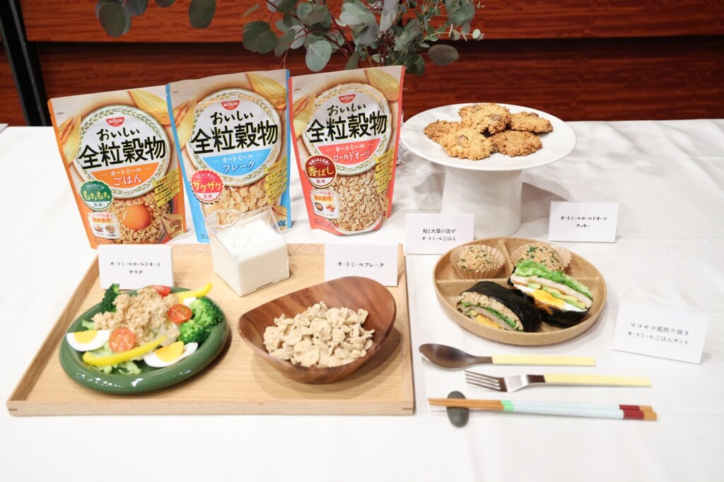 日清シスコは、いま世界で広がる新たな健康トレンドに踏み込んだ。2026年3月17日、同社は新ブランド「おいしい全粒穀物シリーズ」を発表。4月6日(月)に全国新発売となる(EC企業サイトでは3月18日から先行発売)。会場にはタレントで5児の母でもある辻希美さんと、料理研究家で栄養管理士の関口絢子さんを迎え、商品説明に加えて、不足しがちな食物繊維を“手軽な価格で”“おいしく”“普段の食事から”摂るレシピの紹介や料理の試食も行われた。