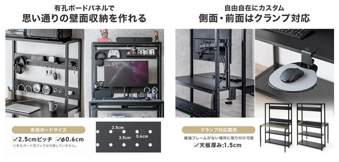 サンワサプライ株式会社が運営している直販サイト『サンワダイレクト』は、限られたスペースでも快適な作業環境を実現したい――そんなニーズに応える多機能パソコンラック「100-DESKH087BK」を発売した。