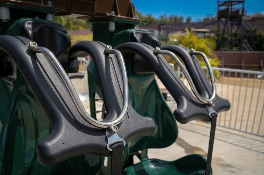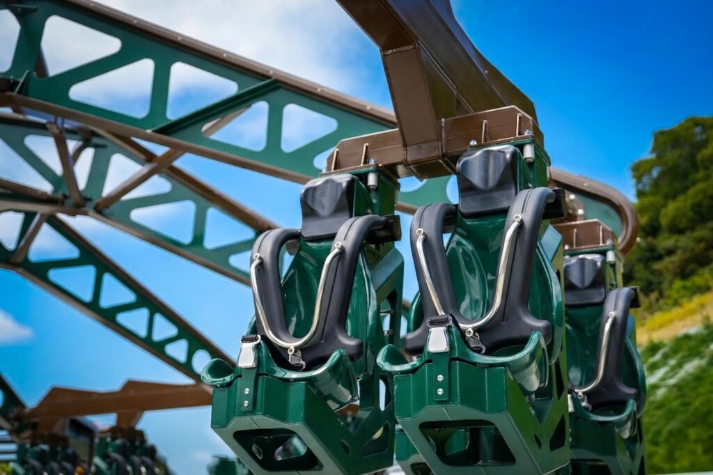 やんばるの起伏に富んだ地形は、通常の施設建設においては平坦にされがちだが、本アトラクションではその発想を逆転。渓谷の起伏をそのまま体験の高低差として活用し、さらに樹木を一本も切らずに構造体を設計することで、やんばるの大自然に溶け込むアトラクションを実現した。そしてこの設計が、独自の「視点体験」を生み出している。ライドが回転し始めると、やんばるの深い緑の渓谷が眼下に広がり、そのまま一気に沖縄の大空へと駆け上がる。逆さまになった頂点では、果てしなく続く青空が足元に広がります。回転するたびに景色が切り替わるこの体験は、同じコースを周回しながらも、新たな発見をもたらす設計となっている。やんばるの地形と空を丸ごと使った、ここでしか生まれない超気持ちいい絶叫体験だ。