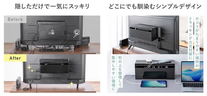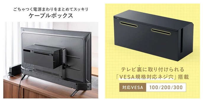 ■VESA対応でテレビ裏に設置でき、Switch2収納と難燃素材で安全性も兼ね備えたケーブルボックス「200-CB101BK」