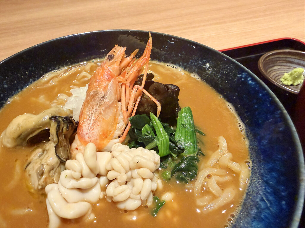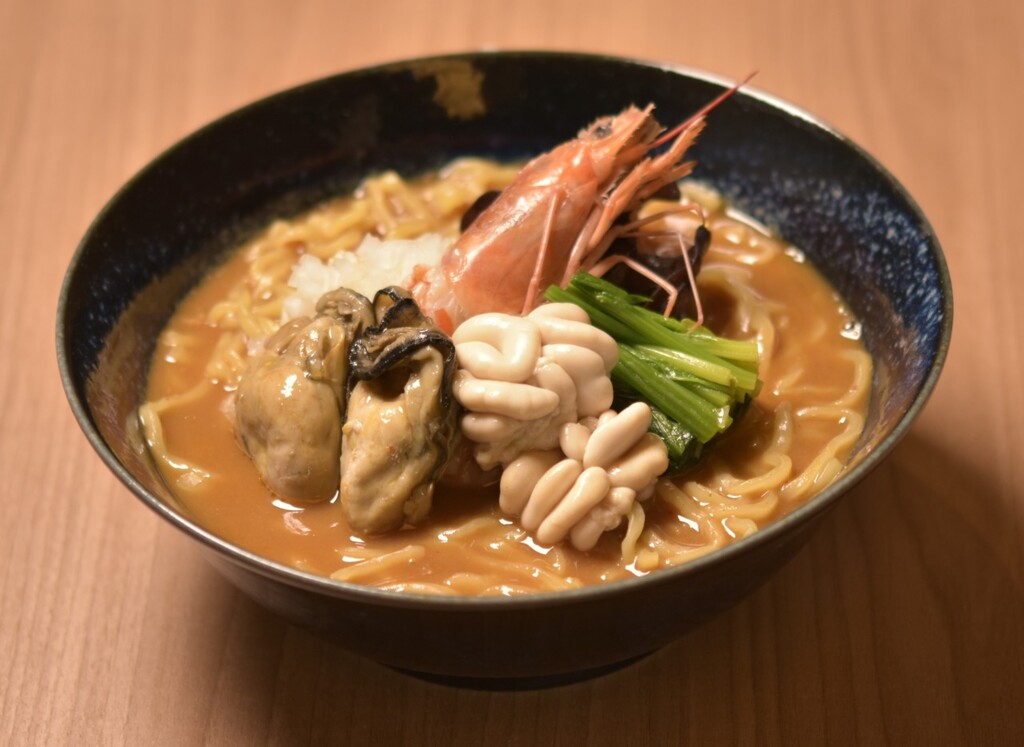 「かいり 特選 痛風味噌ラーメン」は、ひと目見た瞬間から“ただ者ではない”存在感を放つ一杯だ。あん肝、牡蠣、海老といった高級食材が惜しみなく盛り込まれている。濃厚な味噌スープだが、「痛風鍋」のスープではなく、ラーメン向けに開発されたものだ。具材、スープ、麺のそれぞれがしっかりと存在感を放ち、最後の一滴まで飲み干したくなる完成度で、満足感は非常に高い。