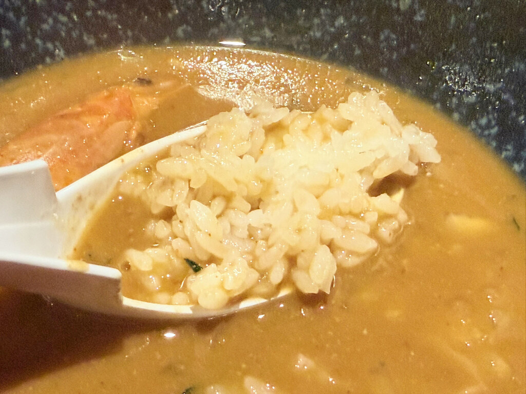「かいり 特選 痛風味噌ラーメン」の楽しみのひとつが、残ったスープにご飯を入れて食べる「おじや」だ。今回はミニ海鮮丼のご飯を使用したが、ライス単品を注文することができる。「おじや」は絶品で、濃厚な旨味が凝縮されたスープだからこそ、この味わいに至るのだろう。