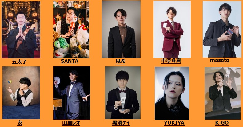 クロースアップ部門では、昨年7月にイタリアで開催されたマジック世界大会「FISM2025」に日本代表メンバーとして出場した五太子と友が昨年に続いて参戦。「FISM2024」に出場の市原冬真や「COIN-CON 2025」優勝のK-GO、「FISM2017」出場の山里レオ、「COIN-CON 2026」出場の風希、日本テレビ「ヒルナンデス」に出演のmasatoの他、ユニークなToy(おもちゃ)マジシャンのSANTAは今年も決勝に。世界レベルのメンバーによる激戦が展開!