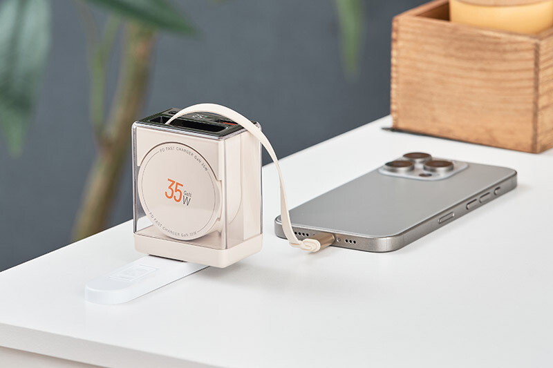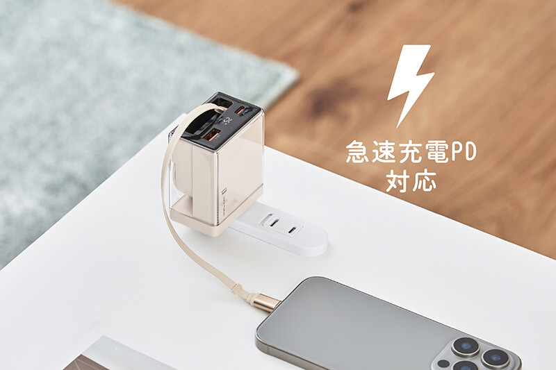 GaN(窒化ガリウム)を採用した小型で軽量な高出力充電器。