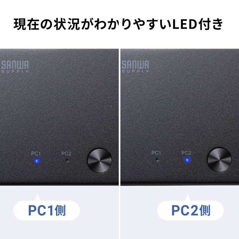 LEDが付いており、現在使用中のパソコンがひと目でわかる。